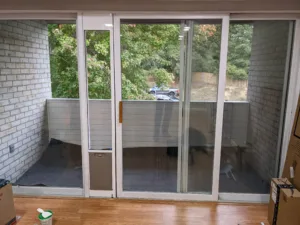 new patio screen door doggy door installed